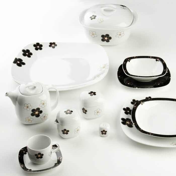 گلدن نایت به صورت سرویس های 12 نفره کامل شامل 98 پارچه و 27 پارچه غذا خوری 6 نفره و 6 نفره چای خوری شامل 12 و17 پارچه تولید شده است.
